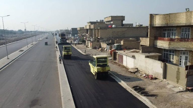 ضمن مشاريع فريق الجهد الخدمي و الهندسي شركة اشور تواصل تنفيذ مشروع الطريق المحاذي لسكة القطار بطول 5 كم في دوانم الشعلة في بغداد