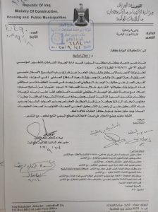 تعلن شركة آشور العامة للمقاولات الأنشائية احدى تشكيلات وزارة الأعمار والأسكان والبلديات العامة الكائنة في النهضة قرب معارض السيارات عن اجراء مزايدة علنية لبيع معمل اسفلت ماريني بطاقة 25 طن / ساعه وللمرة الاولى في ادارة مشاريع البصرة ( مقر الادارة ) العائده لشركتنا و ذلك في الساعة 10 العاشرة من صباح يوم الاربعاء المصادف […]